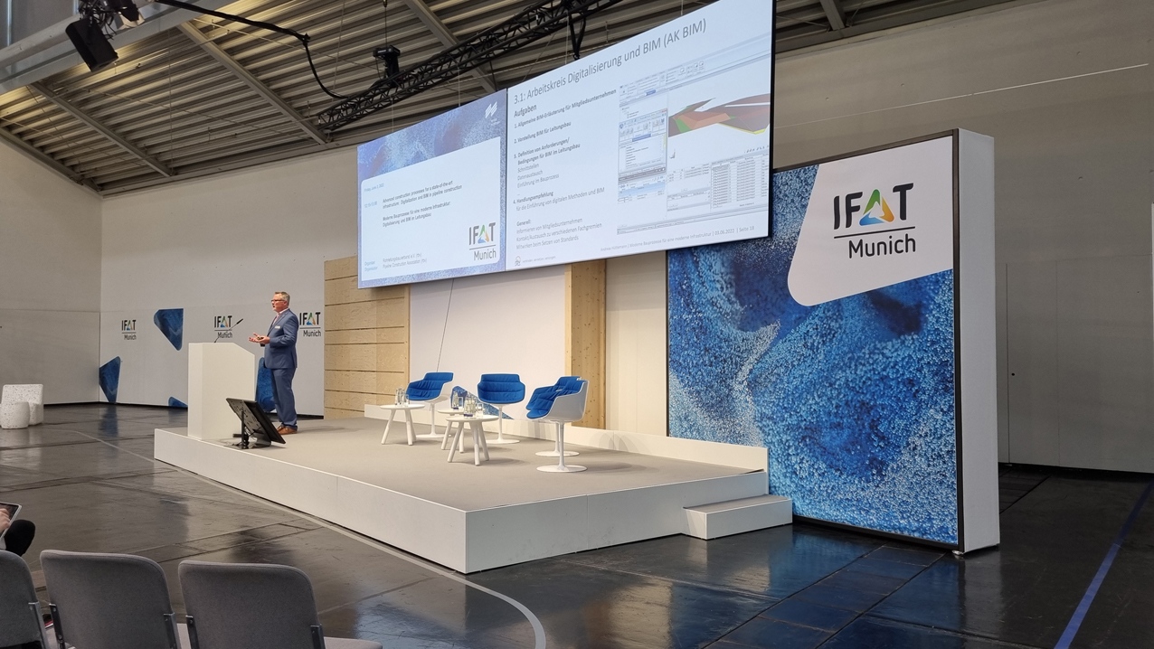 Umfassend, informativ, praxisorientiert – so das Motto des fachlichen Rahmenprogramms der IFAT 2022, in das auch der rbv hochkarätigen fachlichen Input eingebracht hat. Im Forum Wasser/Abwasser referierten rbv-Vertreter, darunter rbv-Referent Andreas Hüttemann, an zwei aufeinanderfolgenden Tagen über den Substanzerhalt leitungsgebundener Ver- und Entsorgungssysteme, über Qualität und Sicherheit beim Rohrvortrieb, über Stauraumkanäle im Kontext urbaner Sturzfluten sowie über die Digitalisierung im Leitungsbau. Auch hier trat erneut der hohe Wissensfundus der Branche zutage und ihre Problemlösungskompetenz für die vielen mit baulichen Mitteln zu adressierenden gesellschaftlichen Aufgabenstellungen unserer Zeit.