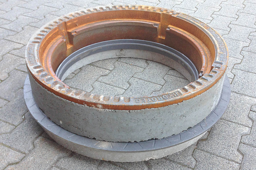 Kanalschächte im Straßenbereich müssen einiges aushalten. Neben vertikalen wirken auch horizontale Lasten auf sie ein. Schachtköpfe nach neuerer Bauart sind deshalb gegen ein Verschieben gesichert. In der Straße liegen jedoch noch überwiegend Schächte nach alter Bauart ohne eine solche Sicherung. Für sie gibt es jetzt einen Adapterring, der bei der Sanierung eingesetzt werden kann und die Verschiebesicherheit herstellen soll. Das IKT hat den Ring getestet.