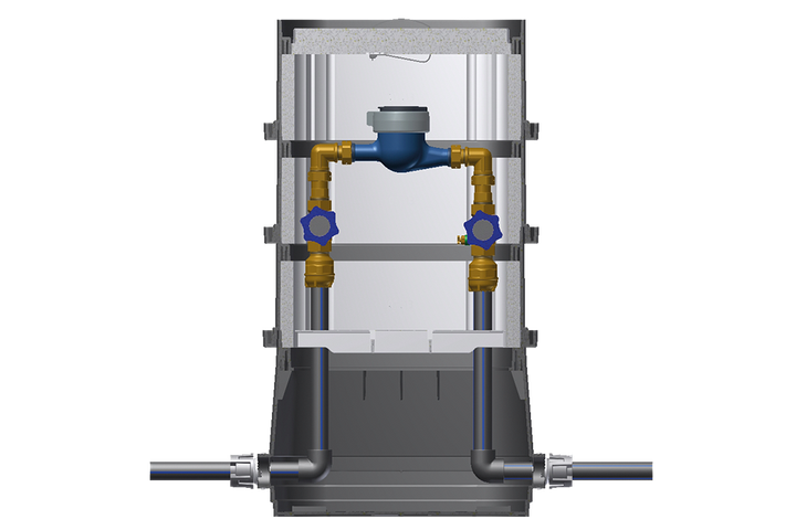 Ganz neu ist das Schachtkonzept von BEULCO: Der Wasserzähler befindet sich nicht mehr am Boden des Schachtes, sondern direkt unter der Abdeckung, so kann er einfach abgelesen und gewechselt werden. Der feste Einbau minimiert die Beweglichkeit von Einbaukomponenten und reduziert somit effektiv mögliche Schadensquellen nach jahrelangem Einsatz. Die spezielle Isolierung unterstützt die geothermische Wirkung. Die vom Grund des Schachtes eindringende Wärme steigt im Inneren nach oben und sammelt sich dort. Dadurch kann auch bei sehr niedrigen Temperaturen ein frostfreier Einbau des Wasserzählers sichergestellt werden.