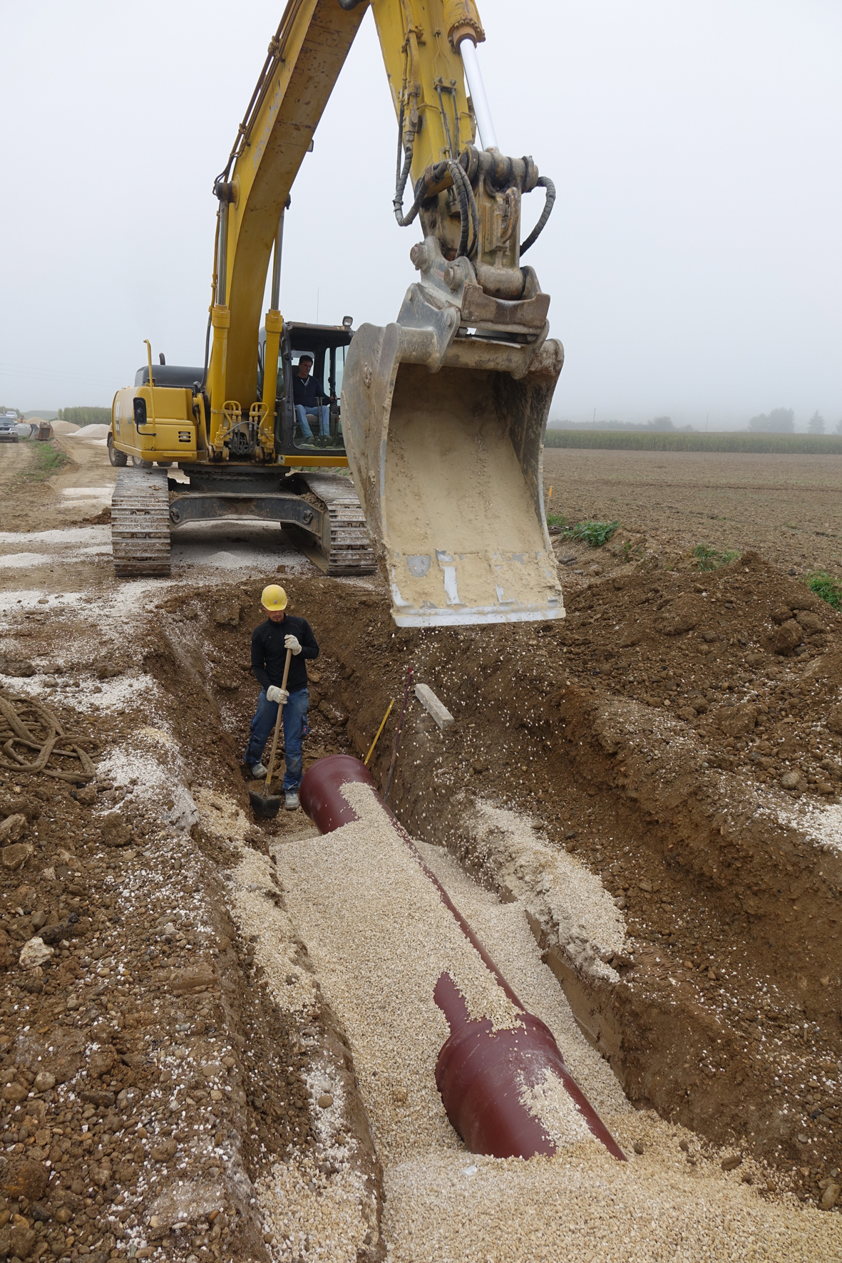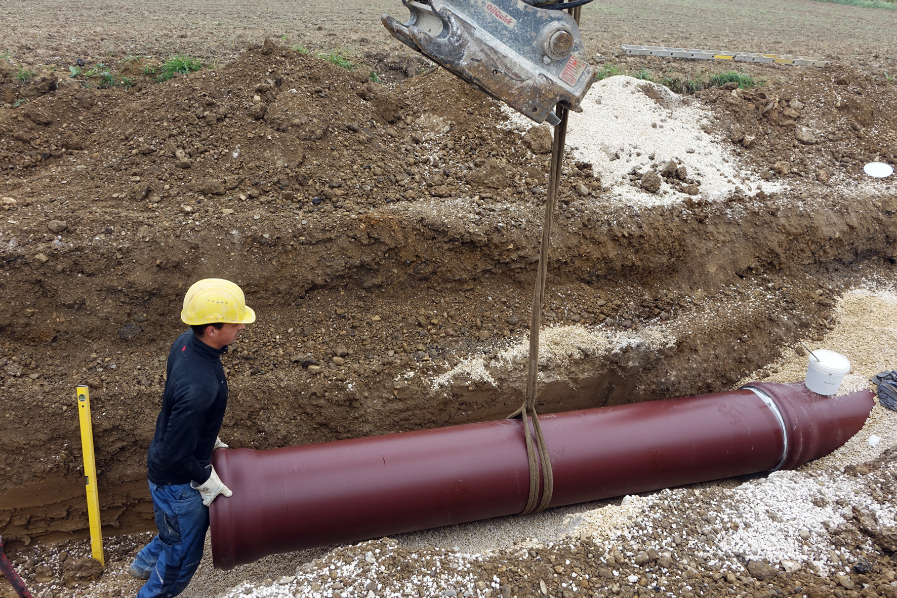 Mit dem CONNEX- und dem HS®-Kanalrohrsystem kamen dabei Produkte zum Einsatz, die vor allem aufgrund ihrer Werkstoffeigenschaften überzeugen konnten. So etwa in Bezug auf die gute Hydraulik, die auch bei Trockenwetterabfluss dafür sorgt, dass Rückstände in den Haltungen weitestgehend vermieden werden. Darüber hinaus spielten vor allem die HS®-Kanalrohre ihre Stärken in Bereichen aus, in denen nur eine Überdeckung von rund 60 cm möglich war.