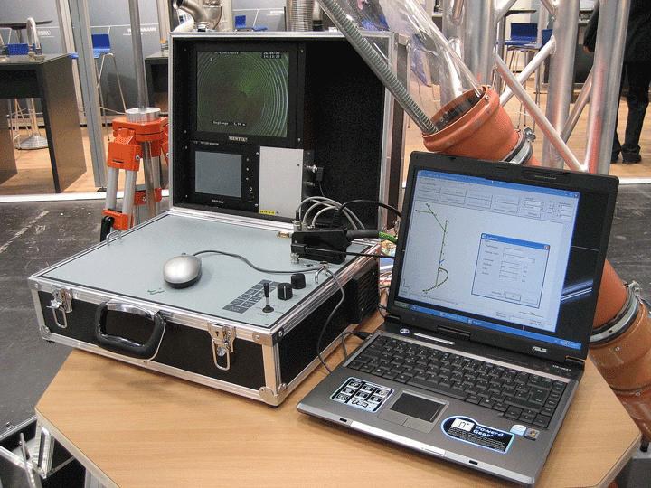 Aktuelles Beispiel dafür, die Grundstücksentwässerungs-Kamera "Lindauer Mini-Schere", neuerdings in Kombination mit dem einzigartigen Kanalverlaufs-Vermessungssystem ASYS. Die JT-Besucher in Kassel und München konnten sich live davon überzeugen, wie ASYS über eine hochmoderne in den Kamerakopf integrierte Mini-Sensorik einen genauen 3D-Verlauf der Kanalnetze definiert. Mit Mini-Schere und ASYS muss der Inspekteur nicht mehr schätzen, in welchem Winkel der Krümmer geschweige denn in welcher Schräglage der Kanal angeschlossen ist. Exakte Messdaten ersetzen künftig Augenmaß und pure Spekulation. ASYS misst ca. 30 mal in der Sekunde alle drei Raumwinkel (Roll-, Azimut- und Pitchwinkel) und erstellt in einer speziellen, an der Bundeswehr-Universität München entwickelten Software, eine dreidimensionale Verlaufsgrafik. Zwar noch nicht in spektakulärer Darstellung, aber mit einer für die Erfordernisse der Praxis völlig ausreichenden Genauigkeit und dem Datentransfer in CAD-Strukturen.