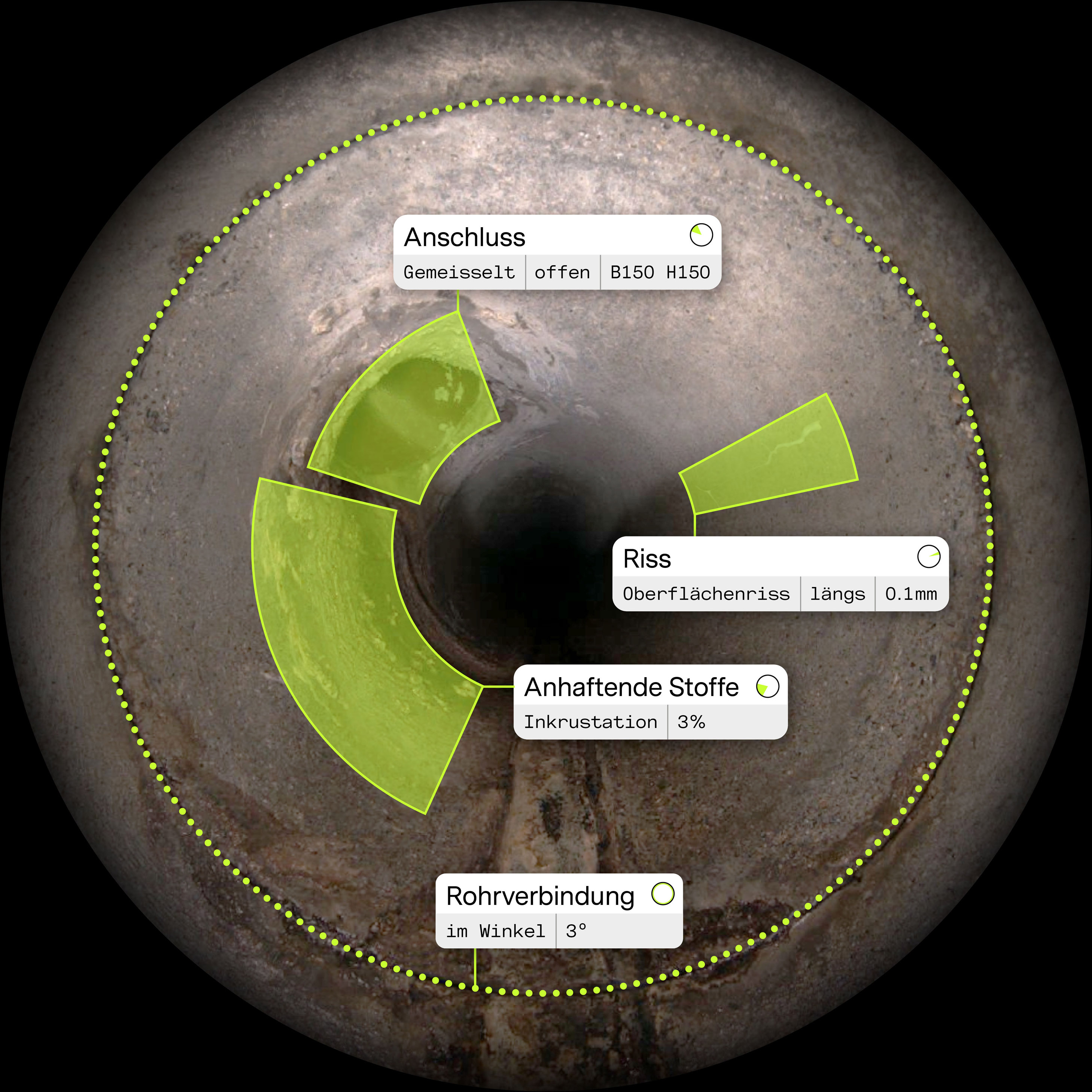 Das Herzstück unserer Technologie sind künstliche neuronale Netze, die für die zuverlässige Erkennung, Lokalisierung und Quantifizierung aller Schäden an Ihren Abwasserkanälen verantwortlich sind. Unsere Modelle unterscheiden mehr als 300 Haupt- und Unterklassen, sodass alle nach europäischen, britischen und US-amerikanischen Kodierstandards vorgeschriebenen Schäden erfasst werden.