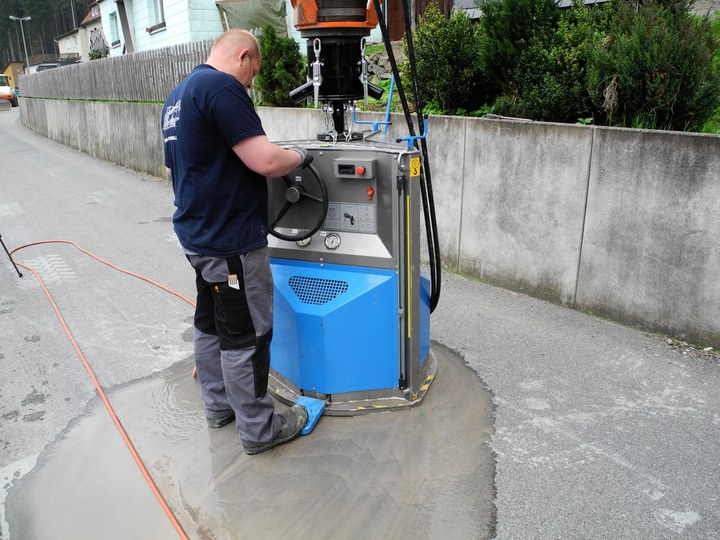 Der Austausch wurde gemeinsam mit dem Armaturenhersteller EWE, Braunschweig, in Abstimmung mit dem Wasserversorger Frankenwald-Gruppe aus Steinberg durchgeführt. Das Bauunternehmen Anton Eidloth GmbH, ebenfalls aus Steinberg, führte mit Unterstützung der TRACTO-TECHNIK, Lennestadt und des TUR Saugbaggerdienstes, Niederau, die Maßnahme als Demonstrationsbaustelle aus.