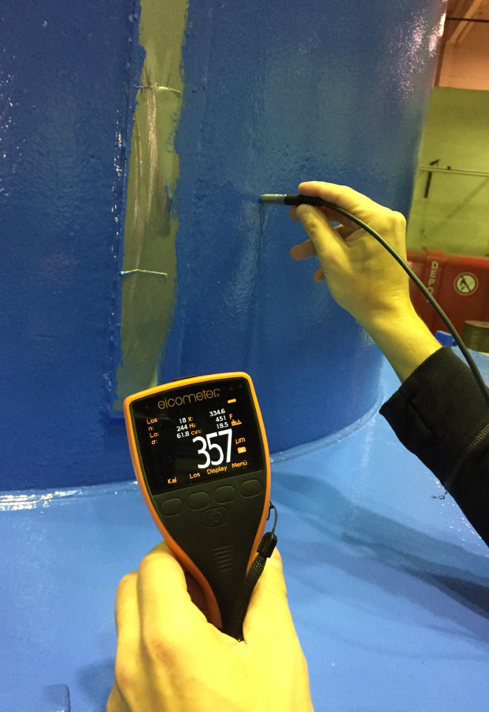 Die einzelnen Schichtdicken wurden dabei mit einem Schichtdicken-Messgerät gemessen und die Werte im Rahmen der Qualitätsüberwachung dokumentiert. Ebenso Bestandteil der Qualitätsüberwachung war die Funktions- und Druckprüfung des fertig instand- und wieder zusammengesetzten Kegelstrahlschiebers. Hier kam auch der Hydraulikantrieb zum Einsatz, der extra für diesen Zweck mit nach Chemnitz geliefert worden war. Nach Abschluss aller Instandsetzungsarbeiten wurden der komplette Kegelstrahlschieber, das gekürzte Zwischenrohr, die Absperrklappe und der Hydraulikantrieb zurück an die Schleuse Hilpoltstein geliefert.
