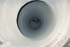 Die TSSR wird für den Reinigungsvorgang auf den Schachtdurchmesser eingestellt, und strahlt dann die Schachtwände automatisch zweimal hintereinander mit einer Durchschnittsgeschwindigkeit von 10cm/min ab. Hierdurch wird der benötigte tragfähige Untergrund für die folgende Beschichtung hergestellt. Die Festigkeit des Untergrundes wird mit dem Rückprallhammer vor der Beschichtung mit ERGELIT-KS1 getestet. Die Annahmen zu den Schichtdicken werden überprüft, bestätigt oder modifiziert. Im Falle von Cornwall entsprach alles den gesetzten Erwartungen.