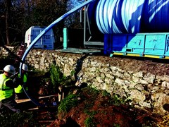 Für die Wasserversorgung während der Installationszeit von Primus Line® zapfte Sinzatec die Verbindung zwischen der zu sanierenden Rohrleitung und einem unterirdischen Aquädukt an. Dies ermöglichte es, einen sieben Kilometer langen Abschnitt ohne zusätzliche Umgehungsleitung zu sanieren. Für die letzten drei Kilometer legte die Sinzatec-Mannschaft einen Bypass, bevor sie den Liner auch hier abschnittweise in das Altrohr einzog.