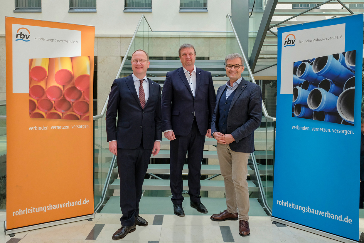 Neu im Trio ist Hartmut Wegener, seit 2012 Mitglied des rbv-Vorstandes. Seine in vielen internationalen Leitungsbauprojekten gewonnene über 30-jährige Erfahrung wird der geschäftsführende Gesellschafter der Dahmen Rohrleitungsbau GmbH & Co. KG, Quakenbrück, nun im Zusammenspiel mit Donath und Burger in das Team einbringen. „Wir freuen uns auf die Zusammenarbeit“, so die beiden rbv-Vizepräsidenten. „Den besonderen Gestaltungsspielraum, den das Amt birgt, werden wir zum Wohle der rbv-Mitgliedsunternehmen nutzen, um die Rahmenbedingungen unser aller Arbeit zu optimieren. All das mit dem Ziel einer genauso zuverlässigen wie nachhaltigen Ver- und Entsorgungssicherheit für unser Land“, betonen Burger und Wegener.