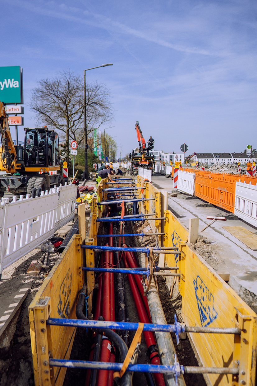 „Diese Leerrohre nehmen später die neuen Hochspannungskabel auf; sie werden nach Abschluss der vorbereitenden Arbeiten von der N-ERGIE Netz GmbH eingezogen“, so Petscheny weiter. Außerdem waren laut Ausschreibung noch die außer Betrieb befindliche Gashochdruckleitung GH 16 200St und in Teilbereichen von bereits totgelegten Gasniederdruckleitungen 150 in Grauguß (GG) bzw. Stahl (St) zurückzubauen.
