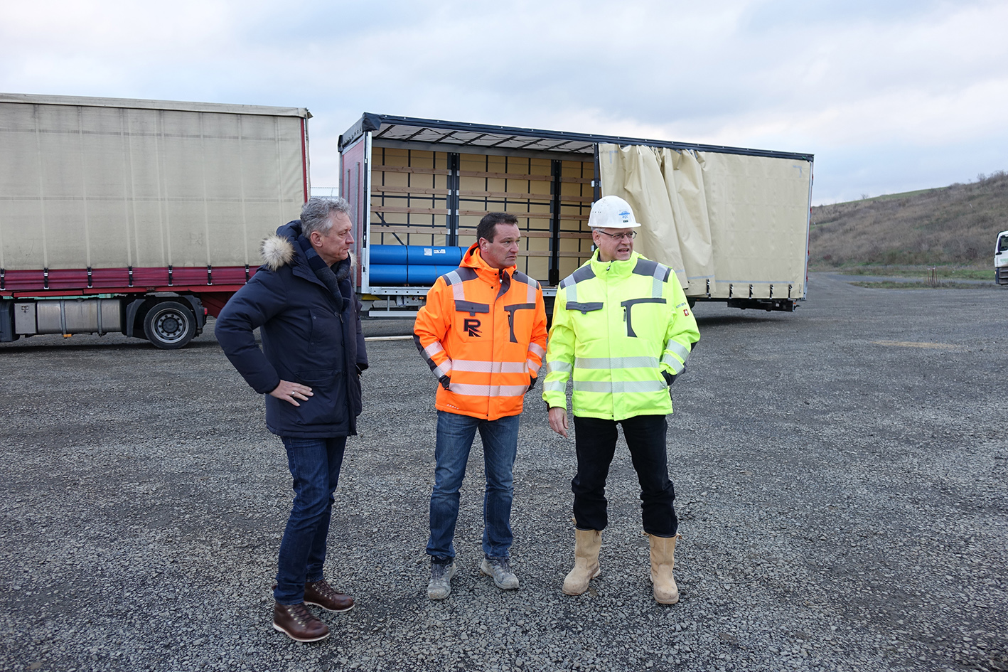 „Die Erdarbeiten auf dem Gelände stellten insofern eine Herausforderung dar, als das Planungsgebiet im Bereich ehemaliger Schlämmeteiche liegt”, so Oster weiter. Bereits für den Bau des damaligen Ballenlagers habe der Baugrund zunächst verbessert werden müssen, auch für die neue Baumaßnahme sei das nötig gewesen.