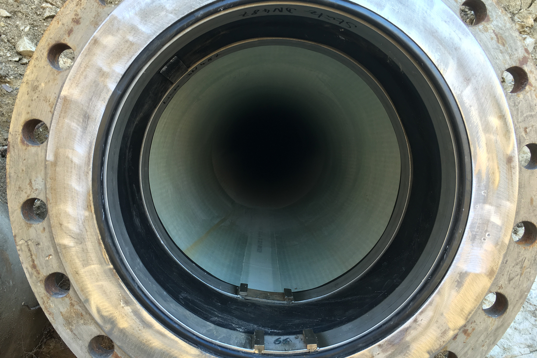 Nach der Aushärtung wurde der Liner am Start- und Zielpunkt im Rohr zurückgeschnitten und mit trinkwasserzugelassenen RedEx®-Manschetten an die Altrohrleitung angebunden. Das Ergebnis: ein neues Rohr, dessen Standard und Qualität den hohen Anforderungen einer Herstellung im Werk entspricht, und das – völlig ohne Unterstützung des Altrohres – alle anfallenden und statischen Außen- und Innenlasten übernimmt.