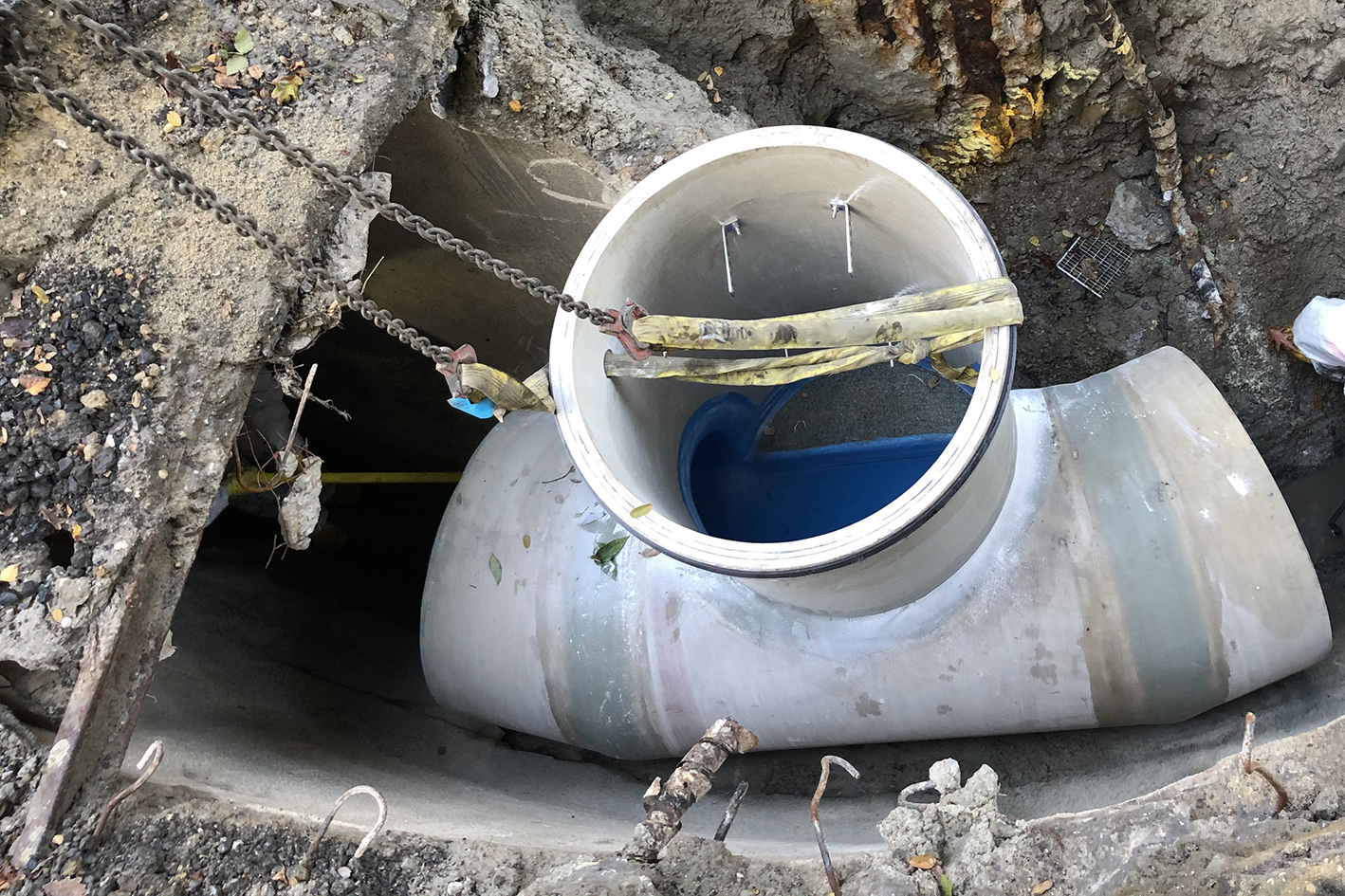 Mit dem Handling der GFK-Rohre zeigten sich die Aarsleff Kolonne äußerst zufrieden. Besonders das geringe Gewicht, wodurch sich die Produkte auf der Baustelle gut bewegen ließen, konnte überzeugen. Anfangs hatte das Planungsbüro noch eine Sanierungsvariante mit Spritzbeton und zusätzlicher Bewehrung in Erwägung gezogen.