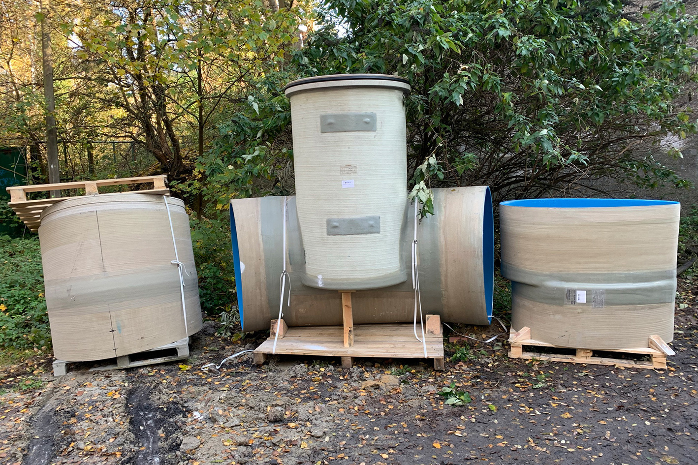 „Das ist eine komfortable Situation. Auf diese Weise konnten wir das ideale Profil für die Gegebenheiten vor Ort finden“, so Hörnemann. Zum Einsatz kamen glasfaserverstärkte Kunststoffrohre Amiblu NC Line, d. h. nicht kreisrunde Profile, die für die Baustelle maßgeschneidert wurden: ein Regel-Eiprofil und ein gedrücktes Ei-Profil mit Trockenwetterrinne. Auf 210 m Länge wurden GFK-Rohre 900/1350 und auf 55 m GFK-Profile 1000/1250 sowie zwei GFK-Tangentialschächte eingebaut.