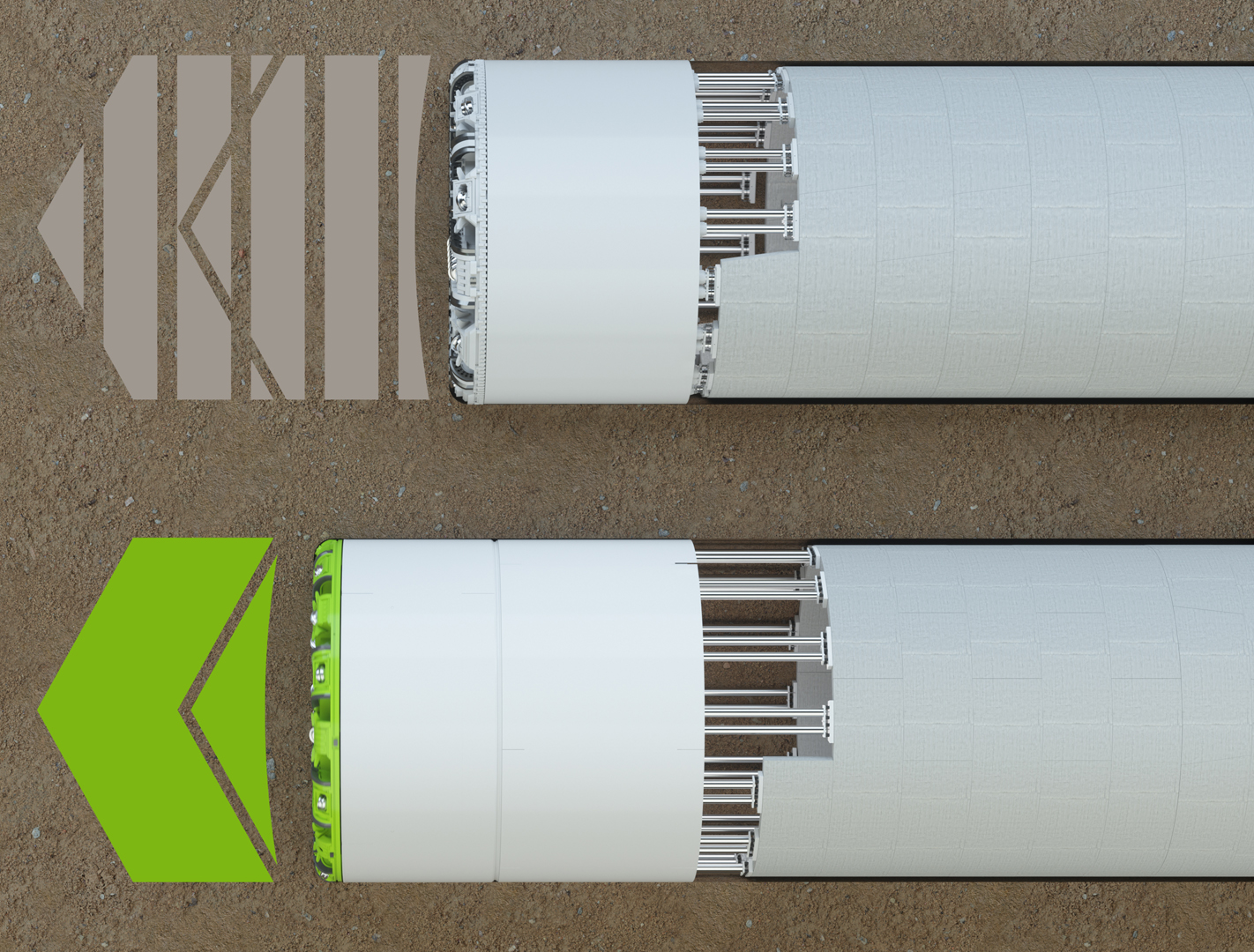 Bis dato wird der maschinelle Tunnelvortrieb mit Schildmaschinen vorwiegend in einer diskontinuierlichen Bohren-Ringbau-Abfolge ausgeführt. Das Vorbohren des Tunnels und der Einbau der Tübbingsegmente erfolgen sequenziell, dem Bohrhub folgt eine Ringbau-Sequenz, was auf einen klassischen Stop-and-Go-Prozess hinausläuft. Erst wenn ein Tübbingring komplett verbaut ist, kann der anschließende Vortriebszyklus gestartet werden. Ein diskontinuierlicher Vortrieb beim Herstellen von Tunneln in weichen Baugrund-Formationen kostet auf längere Strecken gesehen Zeit. Ein kontinuierlicher Vortriebsprozess, bei dem der Ringbau und das Vorwärtsbohren synchronisiert werden, kann dagegen zu einer erheblichen Einsparung von Bauzeit beitragen. Hierfür konzipierten die Ingenieure von Herrenknecht ein auf neuesten Technologien und Engineering aufbauendes Verfahren.