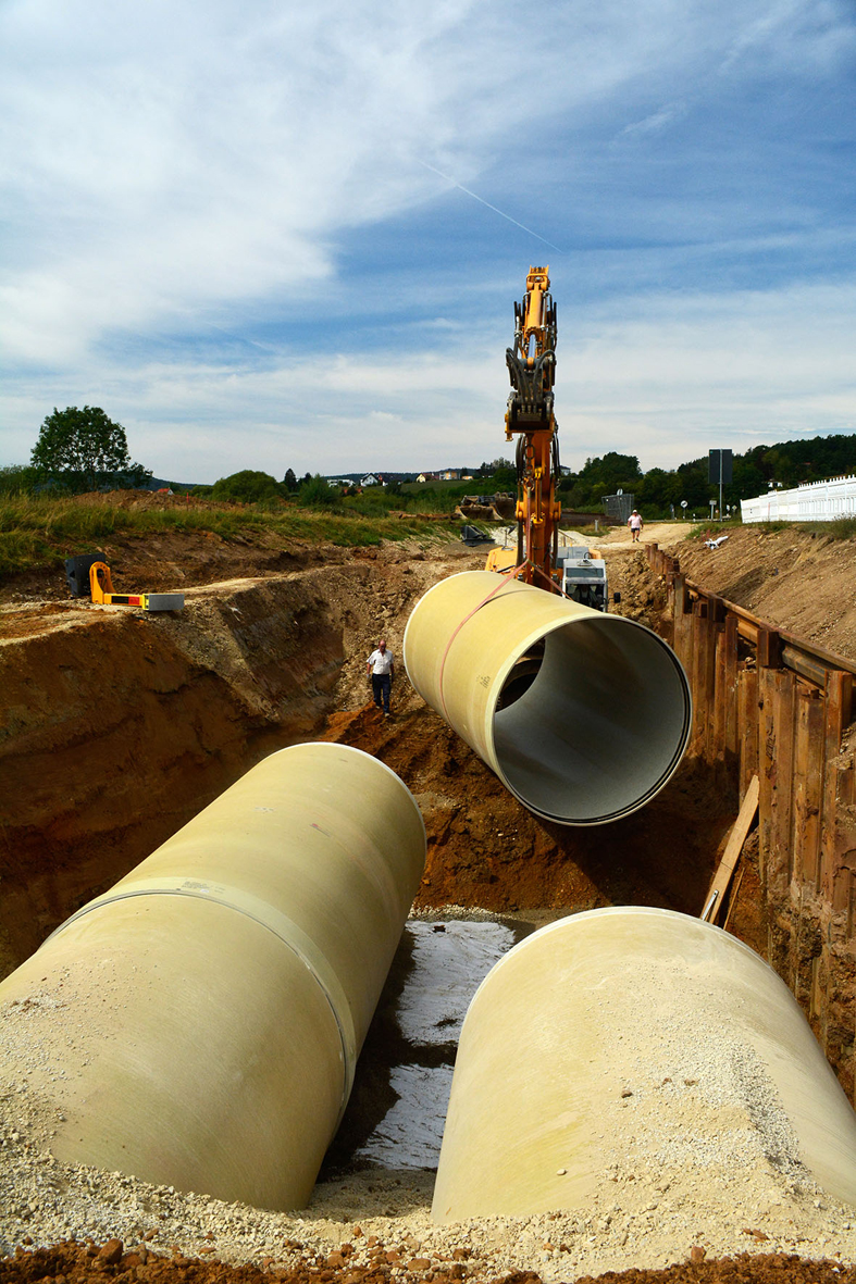 - Zulaufrohre, darunter 12 Meter GFK DN 1000