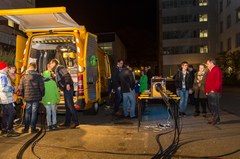 Zu Demonstrationszwecken hatten die Spezialisten der D&S Rohrsanierung außerdem eigens einen kurzen KG-Rohrstrang als Teststrecke aufgebaut, den junge und alte Besucher unter Anleitung mit einem Fräsroboter befahren konnten – eine Aktion, die offensichtlich gut ankam, denn zwischen Beginn der „Langen Nacht“ um 18.00 Uhr und Ende um 1.00 Uhr am nächsten Tag waren die Fahrzeuge permanent von Technikbegeisterten umlagert.