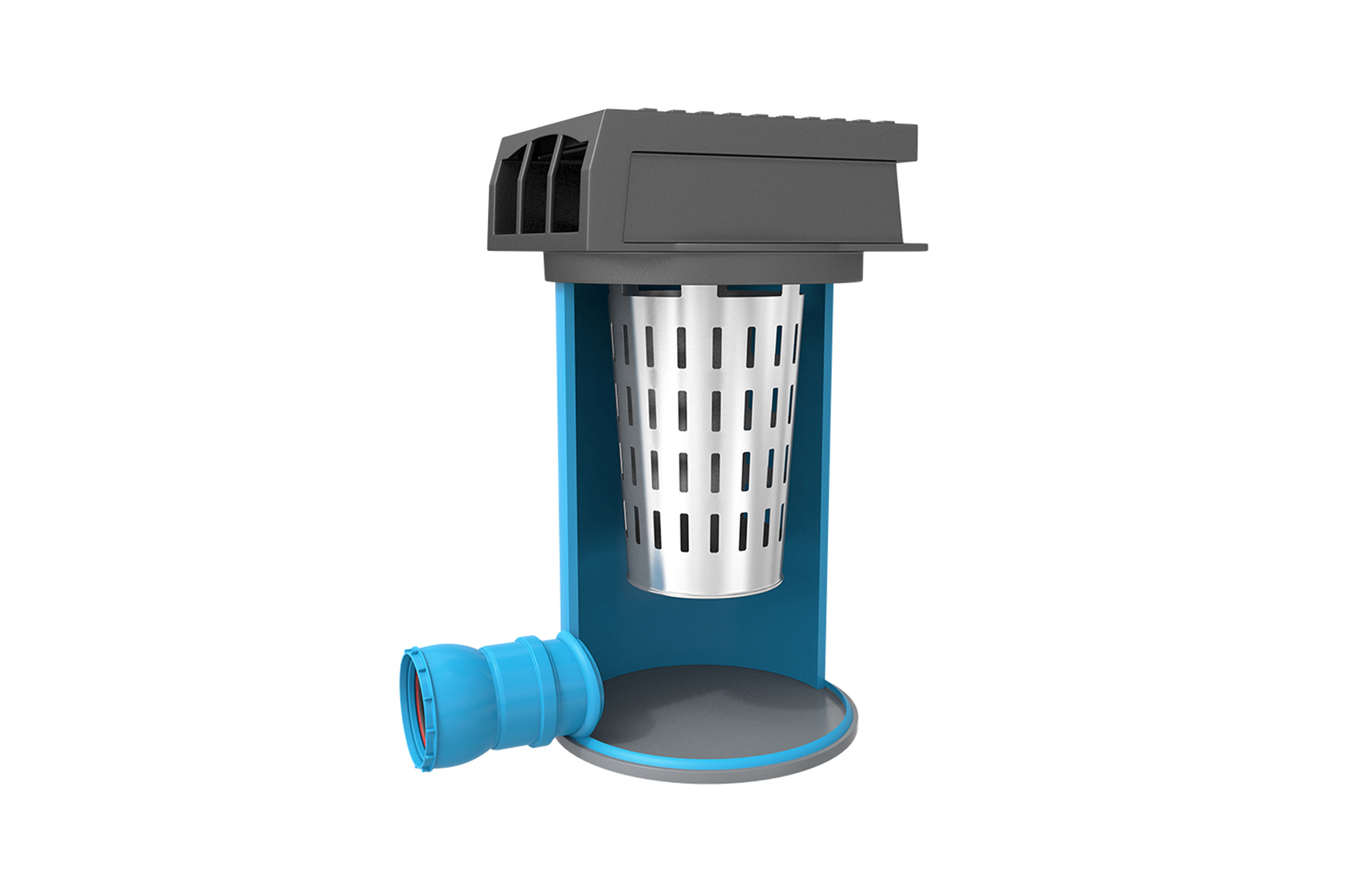 Das Unterteil hat eine Bauhöhe von 800 mm und einen Innendurchmesser von mindestens 450 mm. Die Gesamthöhe des Seitenablaufes beträgt 990 mm. Der Seitenablauf kann sowohl mit einem stahlverzinkten Schlammeimer (Form A) ausgerüstet, oder, bei Bedarf, mit einem INNOLET-Filter für Trockenablauf geliefert werden. Diese Ausführung ist für eine Anschlussfläche von 400 m2 geeignet.