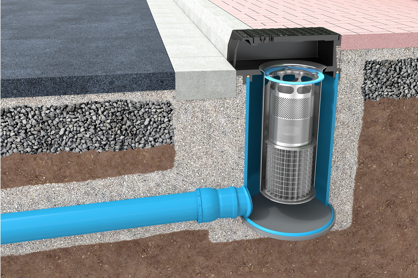 Der Aufsatz aus Guss entspricht der DIN EN 124/DIN 1229 und verfügt über einen seitlichen Ablauf mit einem Einlaufquerschnitt von 482 cm². Er entspricht der Belastungsklasse B 125 und ist mit einem integrierten Lastausgleichsring ausgestattet. Das korrosionsbeständige Kunststoffunterteil besitzt einen seitlichen Ablauf. Eine HS®-VARIOmuffe DN/OD 160, die im Bereich von 0° bis 11° schwenkbar ist, sorgt für Flexibilität beim Einbinden der Rohre.