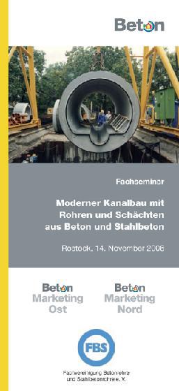 Unter dem Titel "Moderner Kanalbau mit Rohren und Schächten aus Beton und Stahlbeton" wird am 14. November in Rostock eine Seminarreihe fortgesetzt, die die Fachvereinigung Betonrohre und Stahlbetonrohre e.V. (FBS) gemeinsam mit regionalen Betonmarketing-Gesellschaften im Frühjahr 2005 ins Leben gerufen hat.