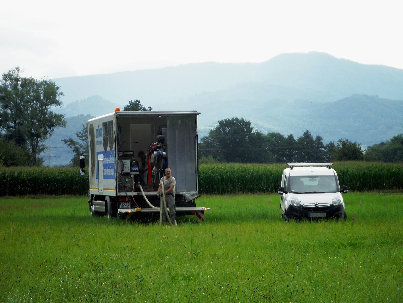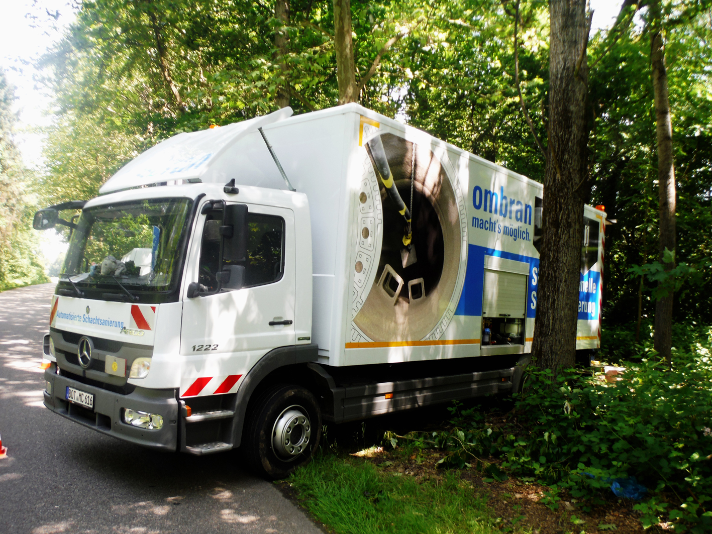 Bei einem anderen Projekt im Breisgau setzte die Orth & Schöpflin Freiburg GmbH den MRT-Truck ein. Hier erfolgte in einem Gesamtzeitraum von fünf Wochen die Komplettsanierung von gut vierzig Schächten trotz schwieriger Wetterbedingungen, die zwischen großer Hitze über 30 Grad und tagelangem Dauerregen wechselten. Zudem lagen die Einsatzorte zum Teil in schwer zugänglichem, ländlichem Gelände.