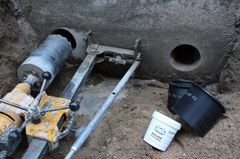 Bauleiter Krämer hat insbesondere der schnelle und einfache Einbau überzeugt. Das Schwierigste sei die Kernbohrung für die neuen Anschlüsse gewesen, so Krämer. Aber diese konnte von STRABAG mit eigenem Gerät und passender Bohrkrone problemlos in den Steinzeug-Stahlbeton-Verbundrohren hergestellt werden. Nach Reinigung des Bohrloches wurde die Ringraumdichtung passgenau bis zum Anschlag eingesetzt.