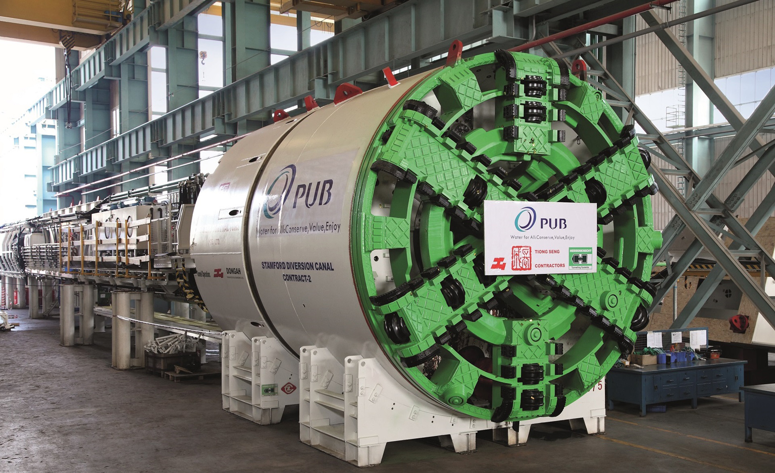 In Singapur bohrte eine Herrenknecht-Tunnelbohrmaschine (EPB-Schild, Ø 5.250 mm) zwei große Abwasserröhren des Stamford Diversion Kanal. Die Herausforderung dabei: kurvige Engstellen, innerstädtischer Vortrieb in einer der am dichtesten besiedelten Städte der Welt. Nach dem finalen Durchbruch der jeweils 1.000 Meter langen Zwillingsröhren werden die neuen Abwasserkanäle zukünftig den Fluss „Singapore River“ entlasten und Überschwemmungen eindämmen.