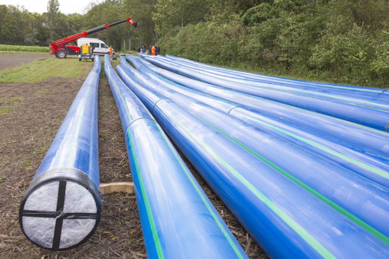 Besonders herausfordernd war ein rund 2 km langer Abschnitt, der durch ein Schutzgebiet mit hohem Grundwasserpegel verläuft. Bei diesem sensiblen Projektabschnitt entschied man sich für das sogenannte „Pflugverfahren“ zur Installation des da 560 mm SDR 17 Rohres. Diese bodenschonende Verlegetechnik verhindert die Verdichtung des Erdreichs und die Durchmischung der verschiedenen Sedimentschichten.