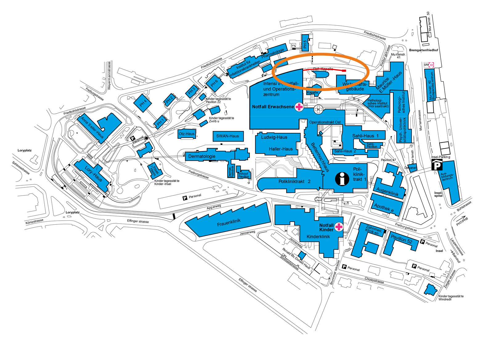 Das im Jahr 1534 gegründete Inselspital in Bern ist eine der bedeutendsten Universitätskliniken der Schweiz und ein medizinisches Hochtechnologie-Zentrum von internationalem Rang. Das Areal im Westen der Stadt umfasst mehrere Gebäude, die eine Vielzahl von hochspezialisierten Fachkliniken beherbergen. Dort werden pro Jahr rund 40.000 Patienten stationär und 520.000 Menschen ambulant behandelt.
