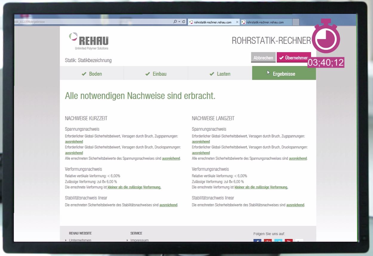 Weitere Informationen finden Interessierte auch unter www.rehau.de/rohrstatik-rechner