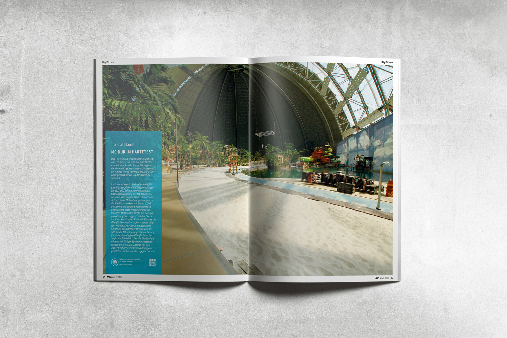 Das Design strahlt durch den ausgewogenen Einsatz von Bild- und Textelementen und durch die klare Strukturierung Ruhe aus und führt den Leser gut durch die Ausgabe. Die neue Typographie sowie der linksbündige Flattersatz sind lesefreundlicher und bieten daher eine bessere Lektüre. Der akzentuierte Einsatz der blauen Firmenfarbe der MC-Bauchemie hebt wichtige Elemente wie Headlines, Zitate und Infoboxen hervor und sorgt damit auch für eine bessere Leserführung.
