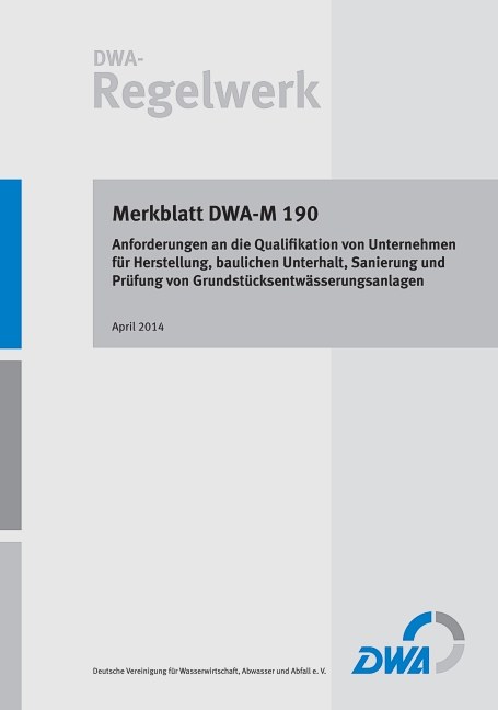 DWA-M 190 behandelt unter anderem die Ausführungsbereiche der Grundstücksentwässerungsanlagen und die Prinzipien der Eigenüberwachung. Der Nachweis der geforderten Qualifikation ist nicht Gegenstand des Merkblatts.