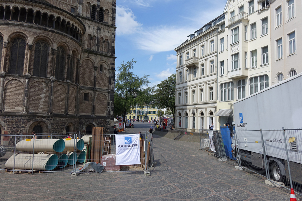 Darüber hinaus war die letzte Haltung durch Verschwenkungen im Kanal gekennzeichnet, die eine Optimierung des Rohreinzuges erforderlich machten. Nicht zuletzt drückten Auflagen der Bodendenkmalpflege den Kanalbauarbeiten ihren Stempel auf, da das Baufeld im Zentrum der römischen Lagervorstadt sowie im Kern der mittelalterlichen Stadt Bonn liegt.
