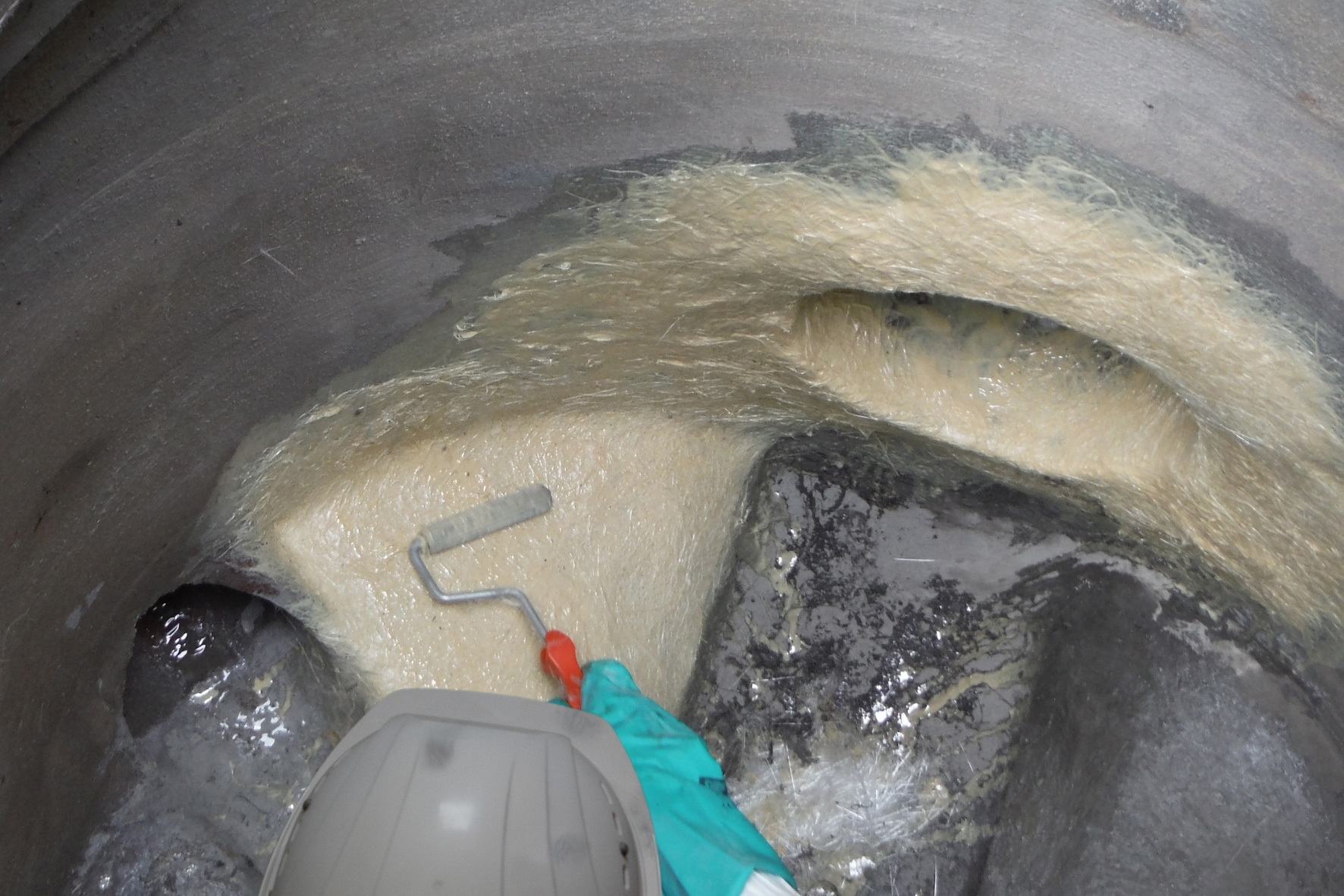Handlaminate eignen sich besonders für das Auskleiden komplex geformter Baukörper. Mit ombran SC hat MC-Bauchemie ein Reaktionsharz auf den Markt gebracht, das vielfältige Anwendungen im Abwasserbereich bietet: Von der Anbindung von Schlauchlinern und der Beschichtung von Gerinnen und Bermen in Schächten über BSK-beständige flächige Auskleidungen bis hin zur Ergänzung von GFK-Elementen und -Platten.