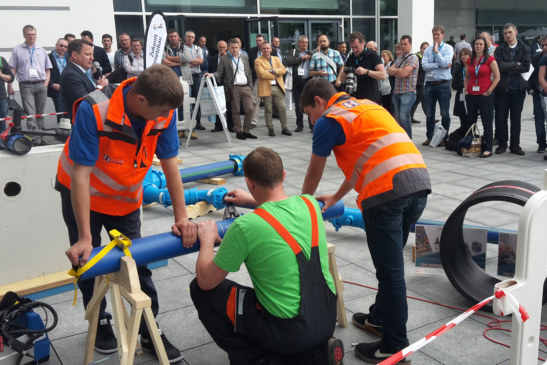 Für positive „Werbung in eigener Sache“ sorgte darüber hinaus eine gemeinsam mit dem Deutschen Verein des Gas- und Wasserfaches e. V. (DVGW) organisierte Praxisvorführung von Netzmonteuren auf dem Freigelände, die Messebesuchern die Gelegenheit bot, Rohrleitungsbaubauarbeiten an Wassernetzen „live“ mitzuerleben.