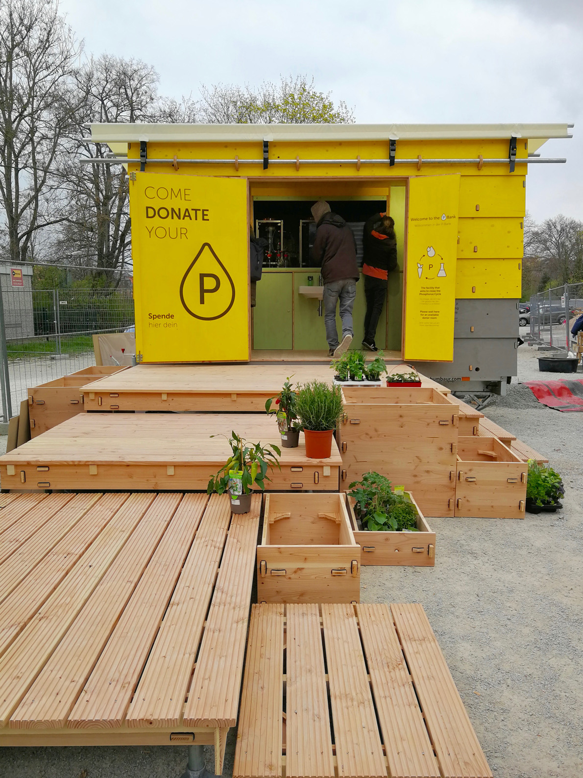 Auf dem Gelände der Bauhaus-Universität Weimar steht seit kurzem ein ganz besonderes Toilettenhäuschen: Der knallgelbe Bauwagen, mit einer Spültrenntoilette auf der linken Seite und einem wasserlosen Urinal auf der rechten Seite, lädt seine Benutzerinnen und Benutzer nicht nur zum Toilettengang ein, sondern fordert auf »Come donate your P« (Spende dein P).