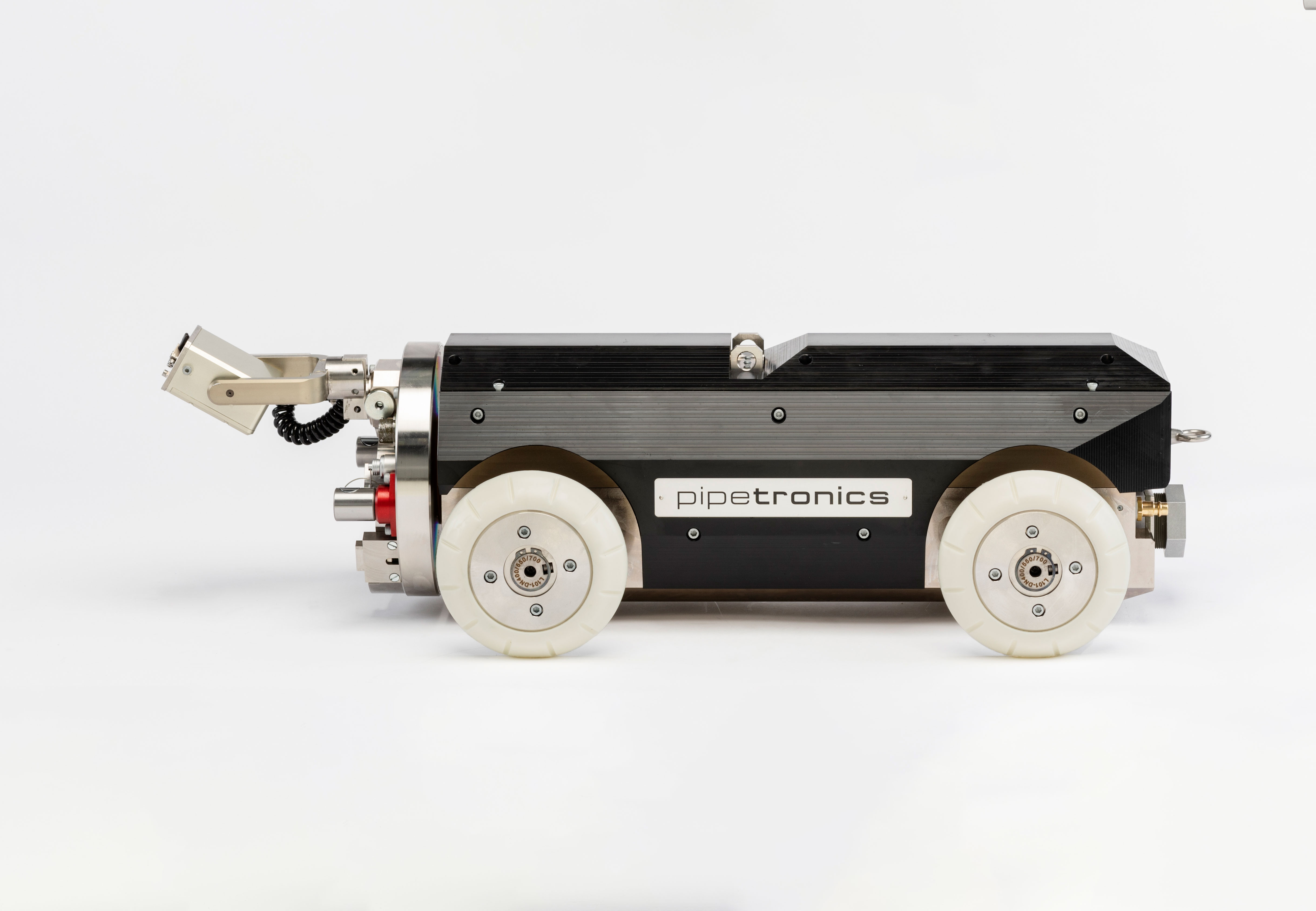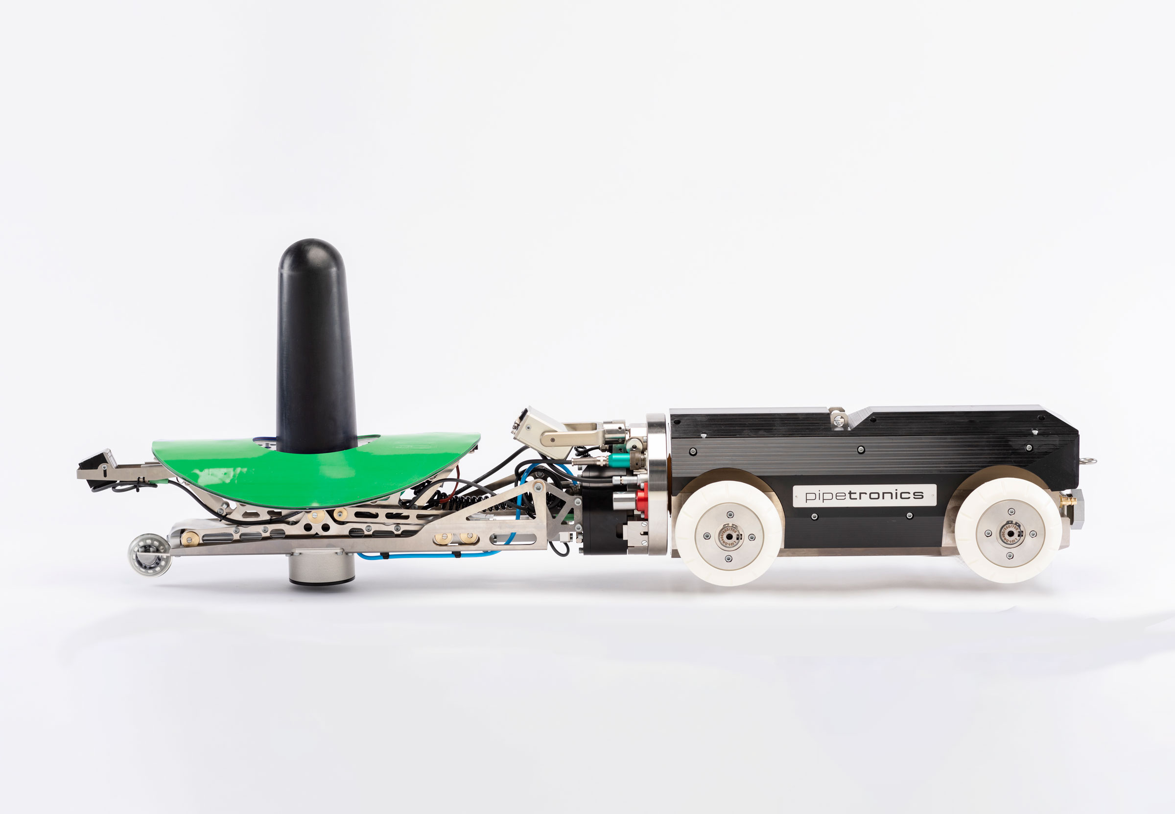 Mit PI.TRON HatSet bietet die Pipetronics GmbH & Co. KG jetzt eine neue, zeitsparende Lösung für das Setzen von Hutprofilen an Abzweigen und Stutzen an. Das Hutsetzsystem ergänzt die bewährte und bekannte eMulti-Anlage. Es zeichnet sich insbesondere durch geringe Rüstzeiten aus. Dafür sorgt der benutzerfreundliche Bajonettverschluss. Mit seiner Hilfe wird das PI.TRON HatSet schnell und einfach an die Spachtelroboter SR 178 und SR 300 montiert. Die Steuerung erfolgt dabei über denselben Steuerstand – intuitiv über ein Bedienerpult mit Joystick. Durch eine 360-Grad-Rotation kann jede Zulaufstelle zuverlässig erreicht werden. Zusätzliche Flexibilität in der Bedienung wird durch den abklappbaren Aufbau geboten. Eine integrierte Kamera erleichtert den Sanierungsprozess.