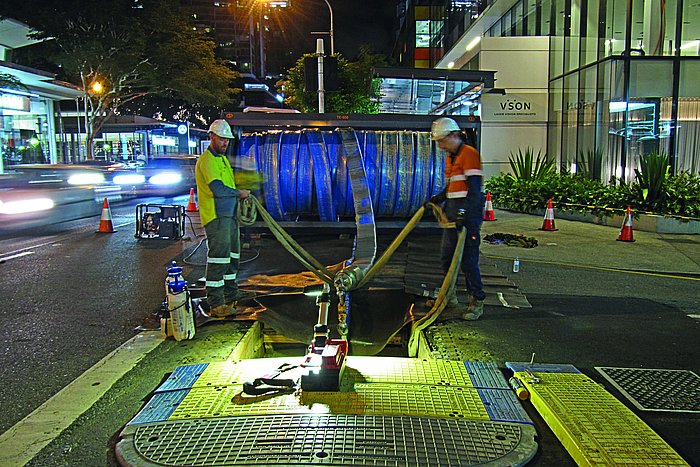 In a single day shift, the pre-folded liner was pulled into the 350 m field trial section of the Ann Street trunk main, formed into its circular shape with compressed air and successfully connected to the pipeline network, demonstrating the speed and versatility of the system.
