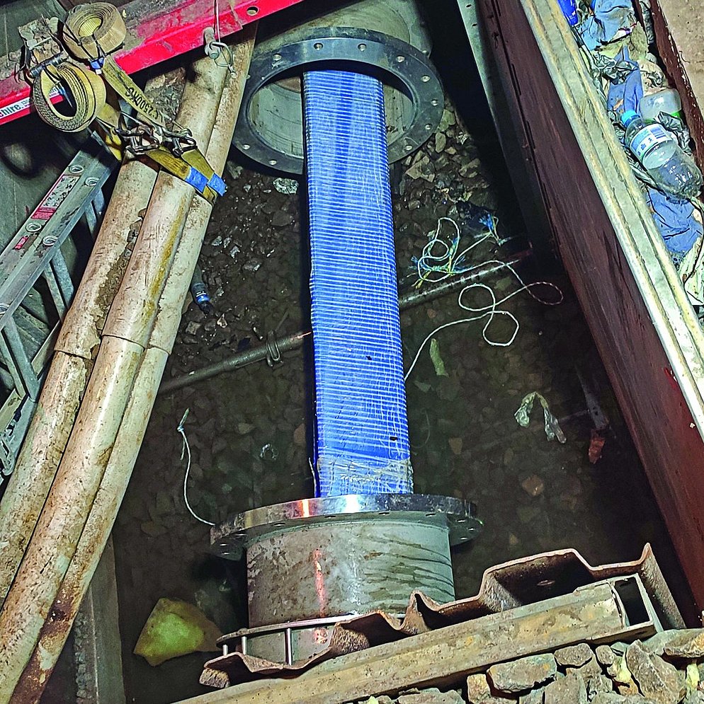 Primus Line delivered the four liner sections pre-folded in a U-shape and wound onto drums. The liner insertion into the old pipe is done with a winch. In the process, it also passed through some additional smaller intermedia pits to reinstate valves and offtakes. The liner was pulled through these pits and cut afterwards to install the Primus Line® connectors and the necessary valves and t-pieces.