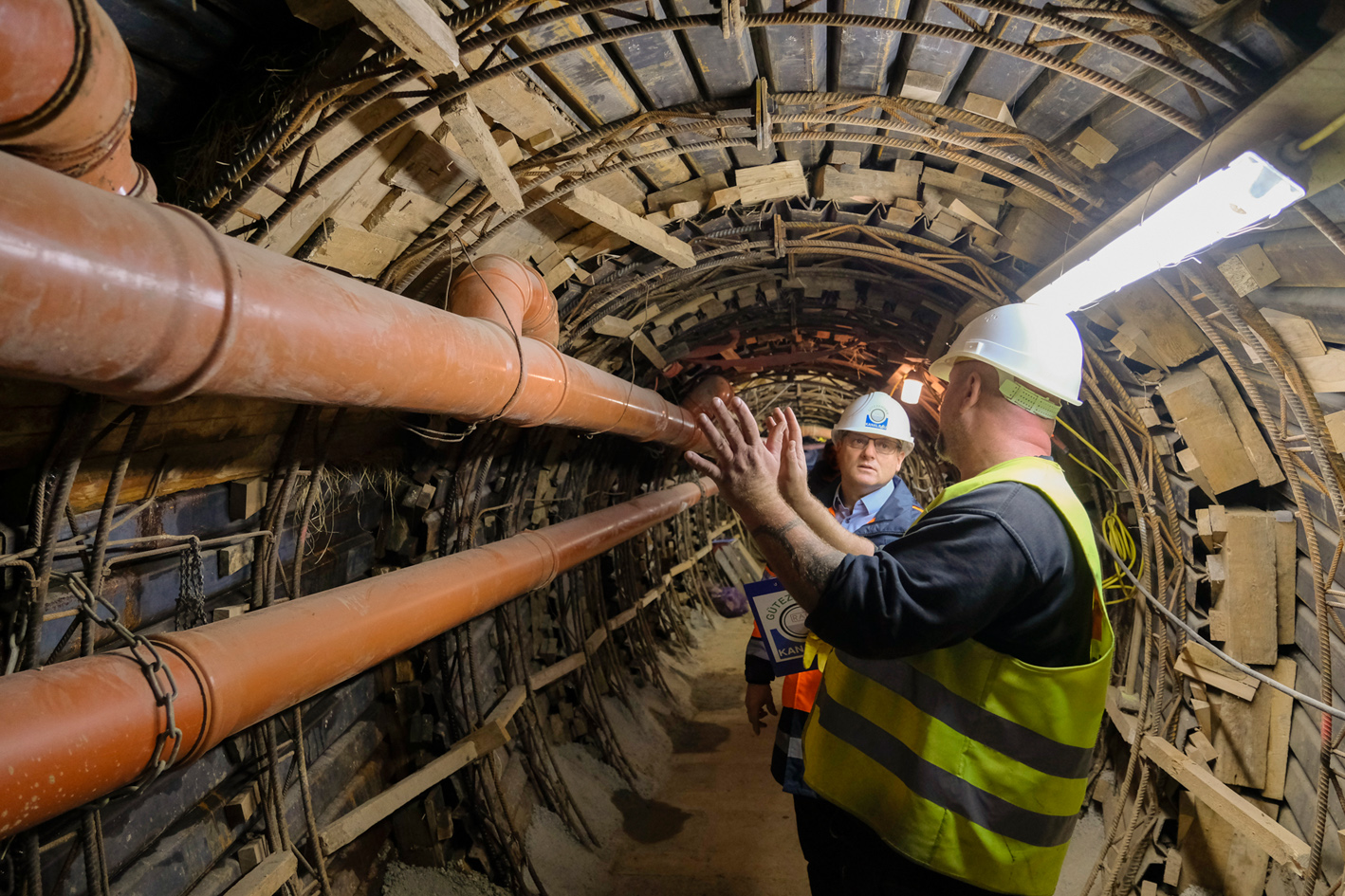 Eine Einschätzung, die Mielke teilt: „An der Ortsbrust und im Stollen war alles in Ordnung. Das Baufeld war sauber und aufgeräumt und das vorgeschriebene Sicherheitsequipment vorhanden. Ich bin sehr zufrieden mit der Baustelle und den Arbeiten von DA Ingenieur-Bau und Fenners.“ Knifflig werden am Ende laut Porrmann noch die Umbindungen des bestehenden Hauptsammlers an die neue Kanaltrasse. Aber auch diese Herausforderung werde das Team gemeinsam meistern, ist Mielke überzeugt.