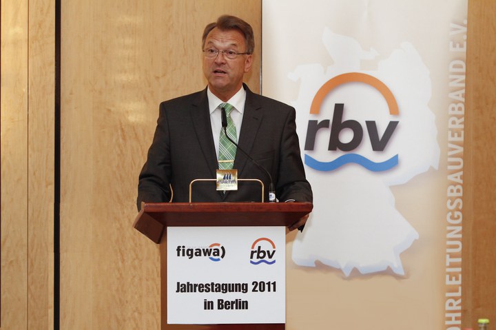 Im Jahr 1 nach der Satzungsänderung präsentierte sich der rbv als starker Partner der Mitgliedsunternehmen aus den Bereichen Gas, Wasser, Fernwärme, Kanal und Kabel, der sich mit einer neuen Struktur und neuen Gremien auf die Herausforderungen eines im Wandel befindlichen Marktes eingestellt hat. Die durch den Paradigmenwechsel in der Energiepolitik ausgelösten tiefgreifenden Auswirkungen auf die gesamte Versorgungswirtschaft bildeten den roten Faden in der Eröffnungsrede von rbv-Präsident Dipl.-Ing. Klaus Küsel. „Auf die Mittelstandsunternehmen des deutschen Leitungsbaus werden enorme Aufgaben zukommen, die zu einer noch ungeahnten Herausforderung werden in Bezug auf Struktur, Personal und ingenieurtechnischer Leistungsfähigkeit“, erklärte Küsel, wobei er darauf hinwies, dass vor allem die Störfälle in Fukushima und die daraus resultierende Diskussion über den Ausstieg aus der Atomkraft aktuell zu noch tiefgreifenderen energietechnischen Umwälzungen in der Branche führen würden. „Bereits das Vorhaben, den Anteil der erneuerbaren Energien am Energiemix von 16 % auf 30 % zu steigern, stellte eine kaum vorstellbare nationale Aufgaben dar“, so Küsel, „doch seit Fukushima scheinen selbst die visionärsten Gedanken überholt.“
