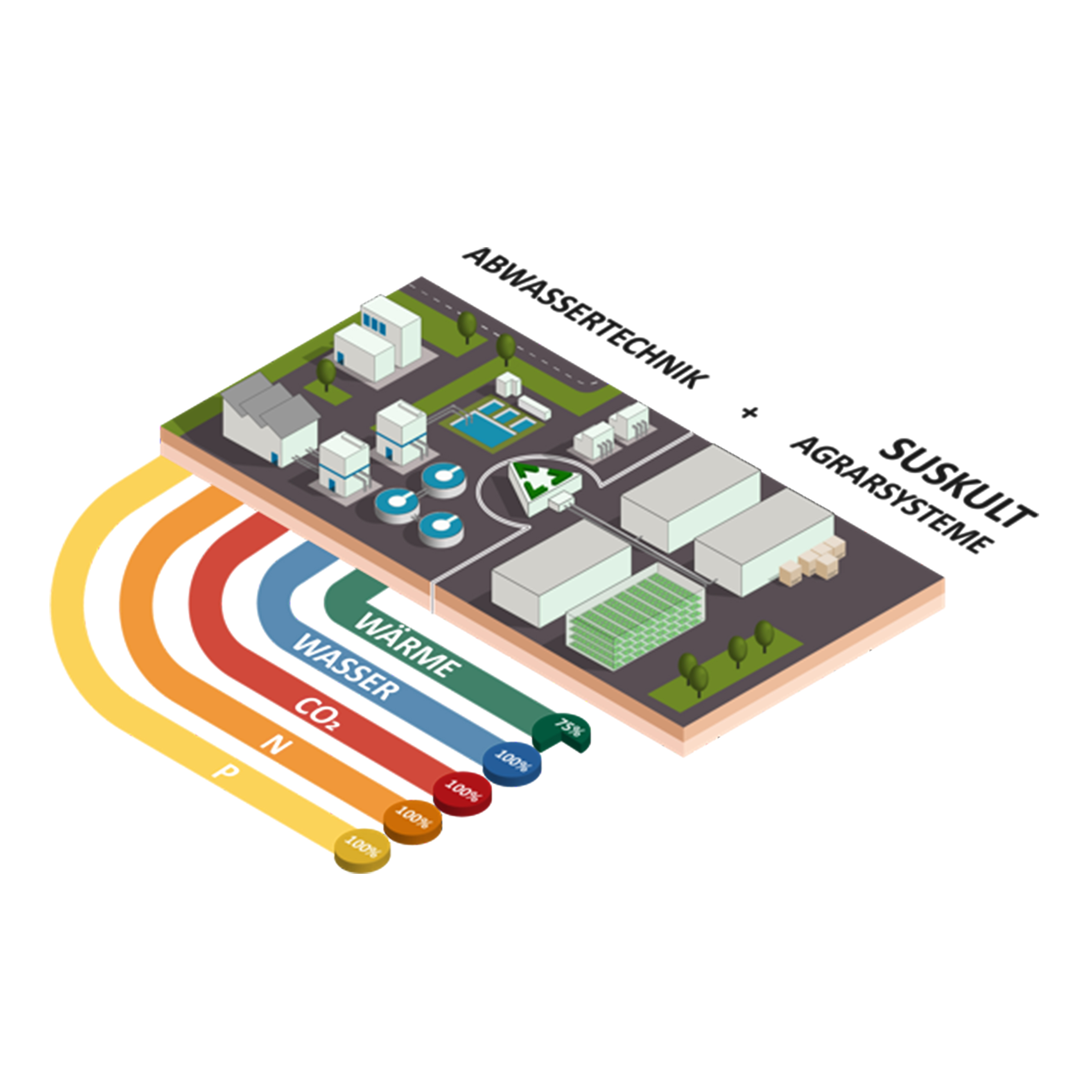 Das Besondere: Die wesentlichen Ressourcen Wasser, Stickstoff, Phosphor, Kalium, CO2 und Wärme werden aus dem Betrieb einer „Kläranlage der Zukunft“ bezogen. Klärwerke bieten also genau die Ressourcen, die für einen geschlossenen Anbau von Gemüse und Obst notwendig sind. Gleichzeitig haben sie durch das enorme Wachstum von Städten ihre frühere Lage am Stadtrand verloren und befinden sich oftmals nahe von Stadtzentren.
