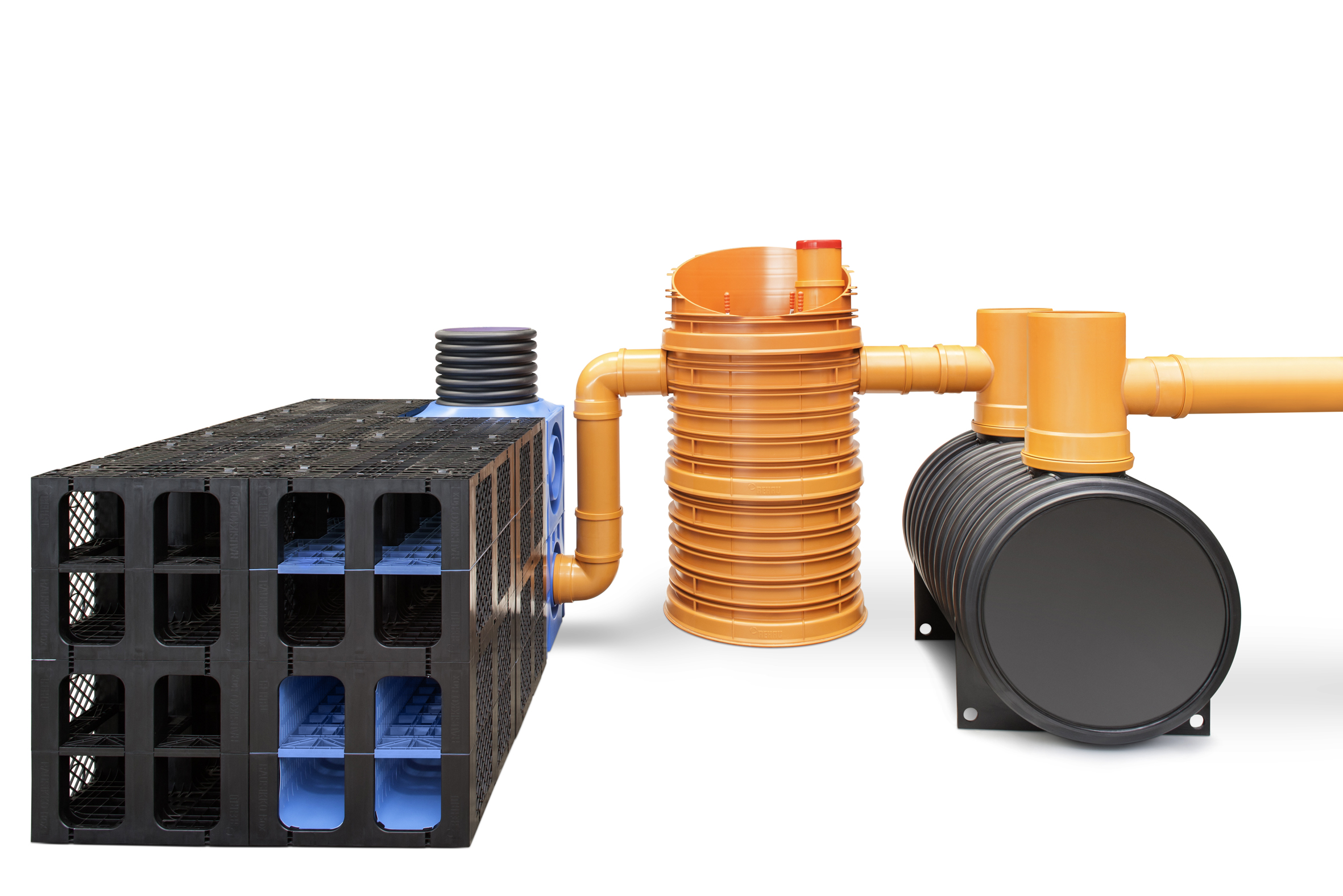 Für den schonenden Umgang mit der kostbaren Ressource Wasser präsentiert REHAU verschiedene Systeme für die Regenwasserbewirtschaftung. So zeigt das Unternehmen beispielsweise seine bewährten Speichersysteme RAUSIKKO Box als komplettes und variables System mit den passenden Systemschächten.