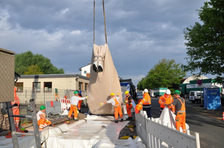 Schlauchlining auch in großen Profilen: Das Bauunternehmen KMG Pipe Technologies sanierte in Bremen einen Mischwasserkanal mit einem Querschnitt von 1390/1800. Dafür wurde der größte Liner geliefert, den das Unternehmen je eingebaut hat.