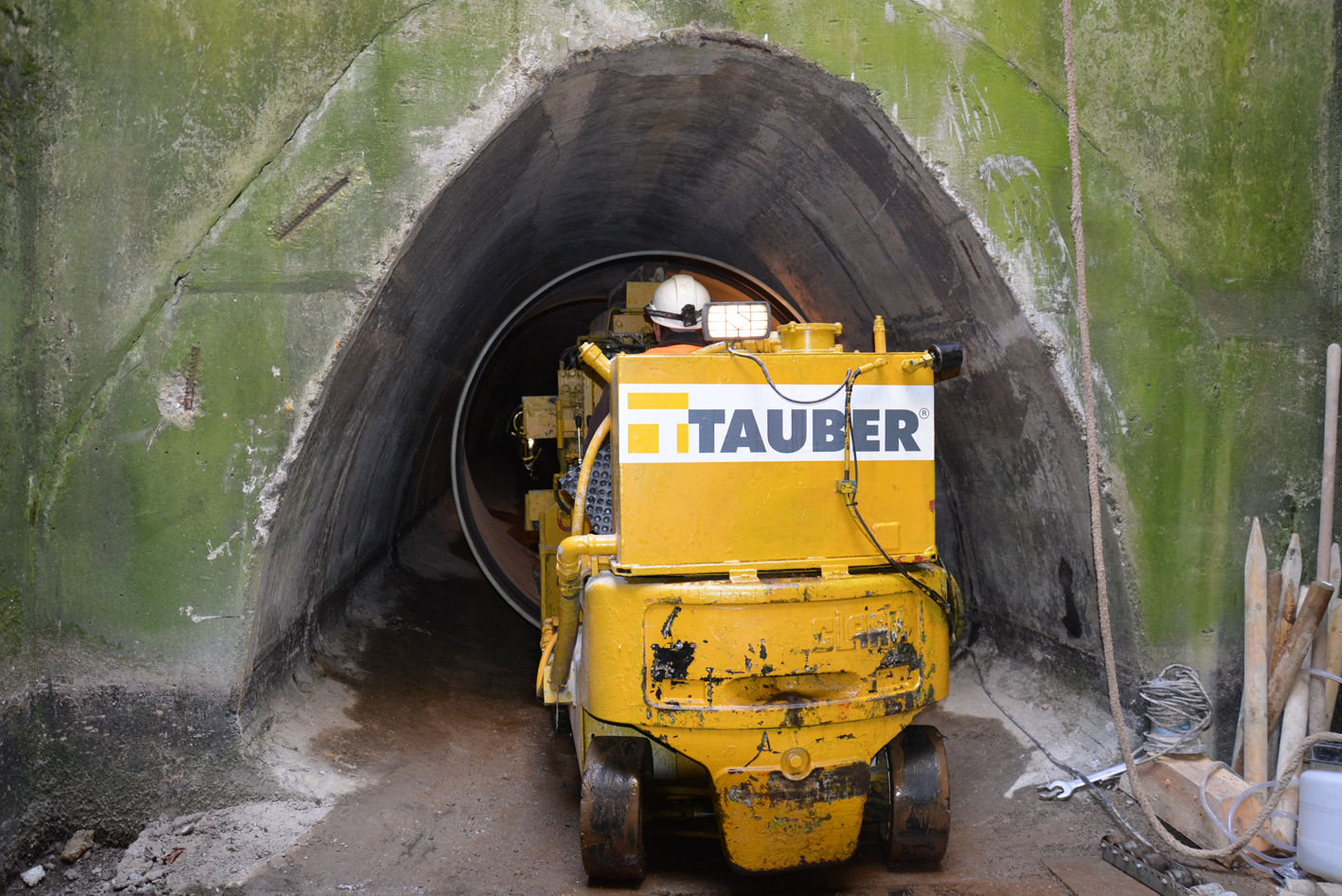 Die Rohre wurden mit einem Spezialfahrzeug der Firma Tauber zu ihrem Bestimmungsort innerhalb des Altkanals auf einer Länge von 275 m transportiert und dort mittels der werkseitig vormontierten Standard-FWC-Kupplungen als Steckverbindungen zusammengefügt. Diese Methode hat sich schon in den unterschiedlichsten Sanierungsprojekten sehr gut für das Kurzrohr-Relining von begehbaren Nennweiten bewährt und ermöglicht eine hohe Verlegegeschwindigkeit bei optimaler Verlegequalität.