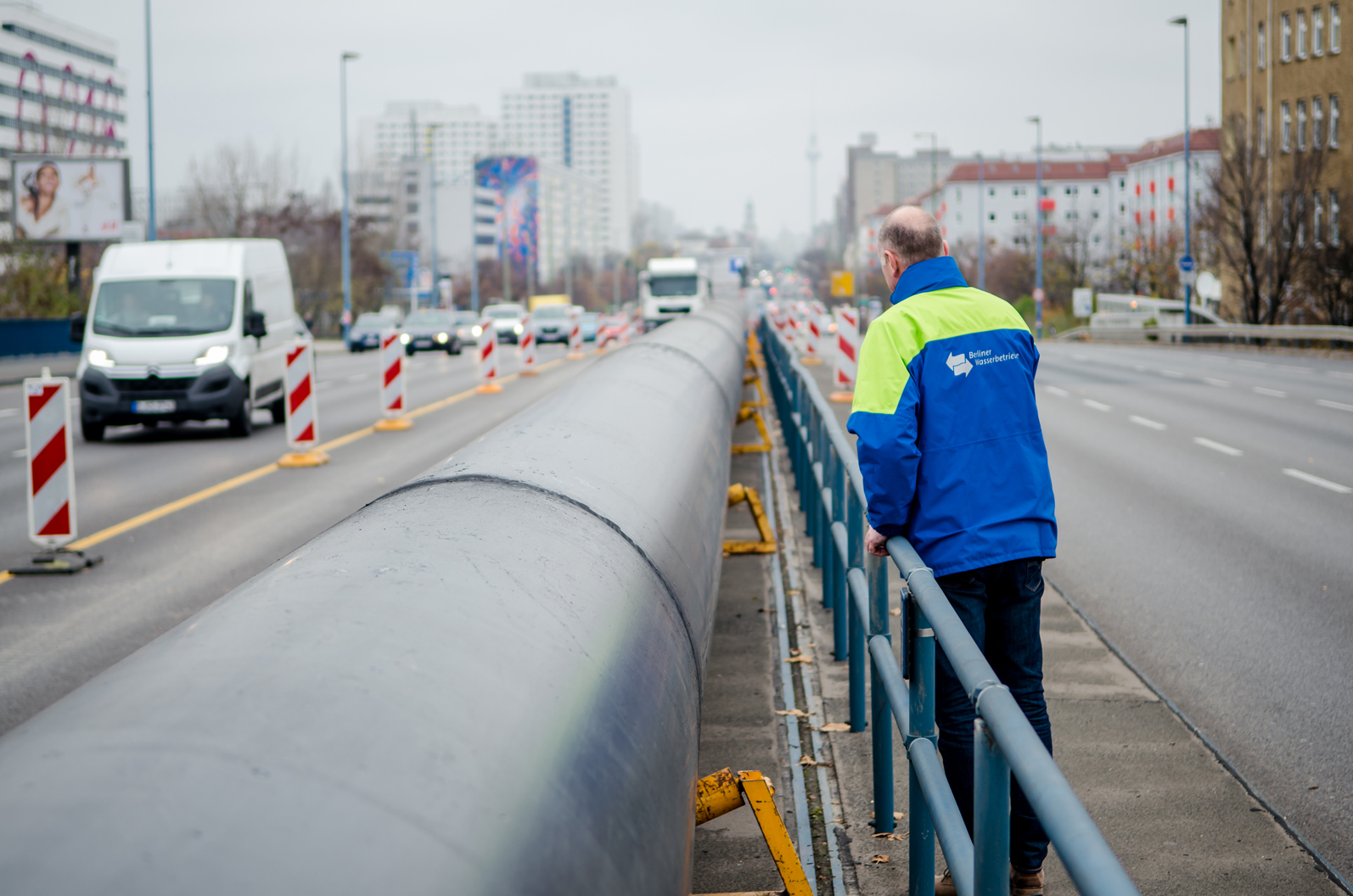 Sie ist einen Meter dick, 102 Jahre alt und bekommt derzeit einen Riesen-Schlauch eingezogen, der sie fit für die nächsten 50 Jahre macht: eine schmiedeeiserne Abwasserdruckleitung, die unter der Frankfurter Allee (B1/5) liegt. Die Berliner Wasserbetriebe sanieren diese durch Einzug von Polyethylen-Inlinern.