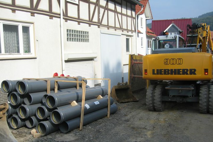 Gleich vier Maßnahmen – die Erneuerung von Fahrbahn und Gehwegen, Wasser- und Kanalleitungen, zum Teil aber auch die Verlegung neuer Hausanschlussleitungen – standen im Ortsteil Dörnberg in der Gemeinde Habichtswald parallel auf der Agenda. Dass der erste Bauabschnitt trotz strengem Zeitplan fristgerecht fertig gestellt werden konnte, lag zum einen an der Koordination der einzelnen Arbeitsschritte durch die Kommune Habichtswald als Auftraggeber und der Arbeitsgemeinschaft bestehend aus Rohde Tief- und Straßenbau GmbH und der Ludwig Pfeiffer Hoch- und Tiefbau GmbH & Co. KG als Auftragnehmer. Aber auch die Wahl des Kanalrohrsystems – da waren sich alle Beteiligten einig – führte dazu, dass die Tiefbauer ordentlich Meter machen konnten.