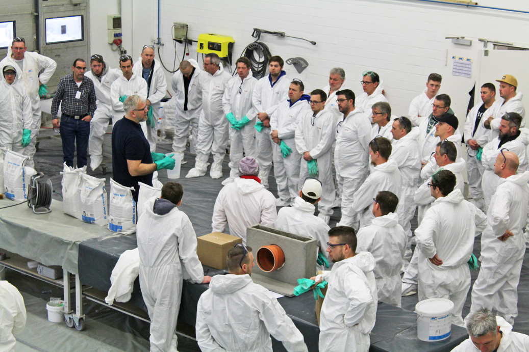 Für diejenigen Verarbeiter, die den Anwenderlehrgang an den Vortagen bzw. in den Vorjahren bereits erfolgreich absolviert haben, gibt es am 20. Februar 2020 einen Aufbaulehrgang, in dem das erlernte Know-how rund um die Schachtsanierung weiter vertieft wird. Neben der maschinellen Verarbeitung von Beschichtungsmörteln und Reaktionsharzsystemen im MRT-Verfahren widmet sich dieser Lehrgang auch dem Thema Arbeitssicherheit.