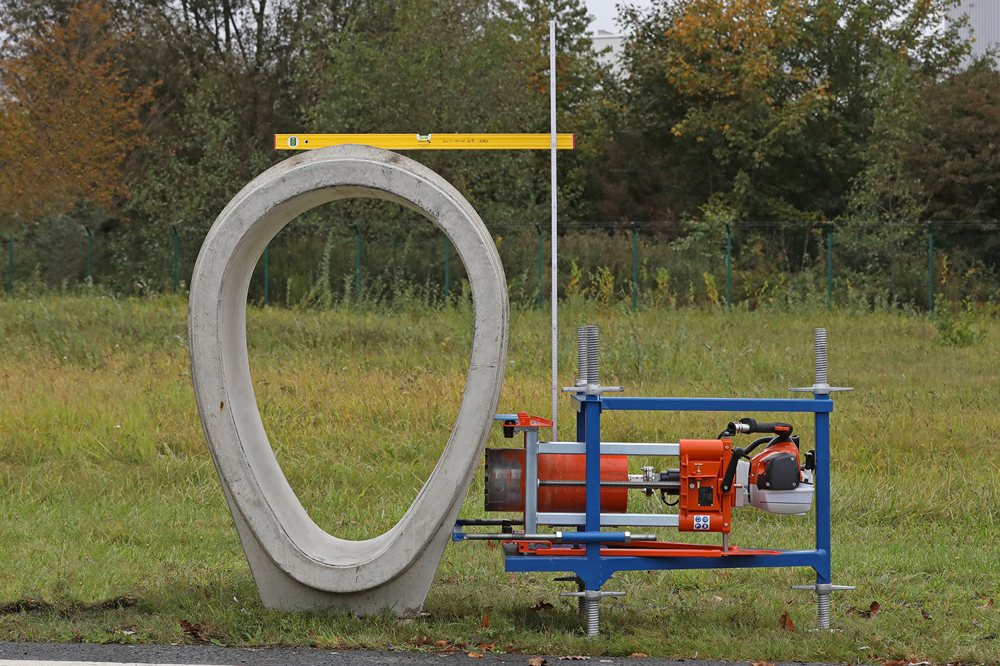 Die Handhabung auf der Baustelle ist denkbar einfach und schnell zu erledigen: Die Ausrichtung erfolgt in kürzester Zeit und das Bohrgerät kann durch eine zweifache Abstützung am Rohr sicher und positionsgenau fixiert werden.