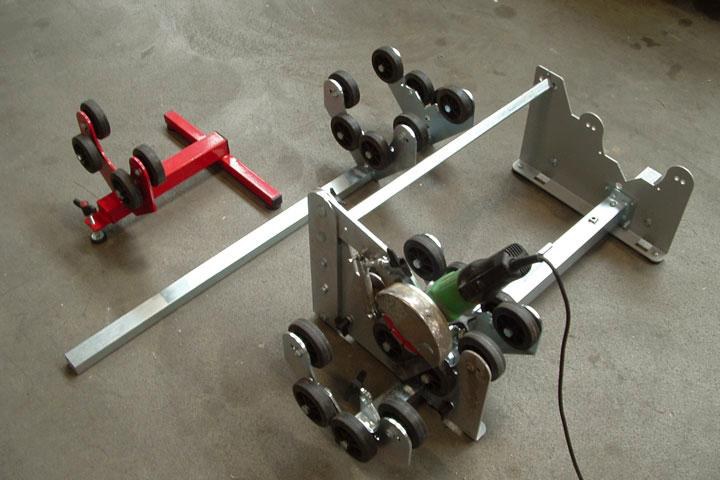 Aufgrund des leichten Gewichts von nur etwa 25 kg ist das Rohrschneid- und Anfasgerät auf der Baustelle leicht zu handhaben. Das kompakte Gerät – die Abmessungen betragen 115 x 50 x 55 cm – findet bequem in einem Pkw Platz. In unwegsamem oder nassem Gelände kann es auf eine Palette gesetzt werden. Dadurch verbessert sich die Standsicherheit. Zudem wird eine angenehmere Arbeitshöhe erreicht.