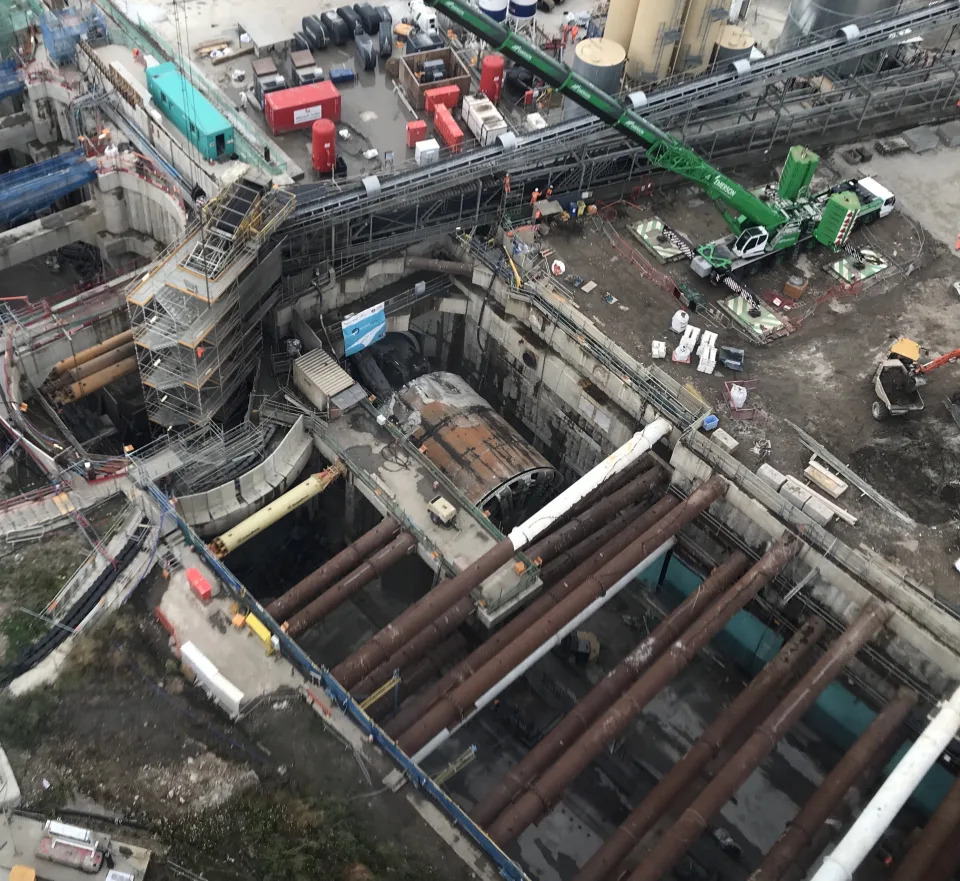 Silvertown Tunnel under Thames - Newham to Greenwich near O2 Arena: See two massive boreholes in east London
