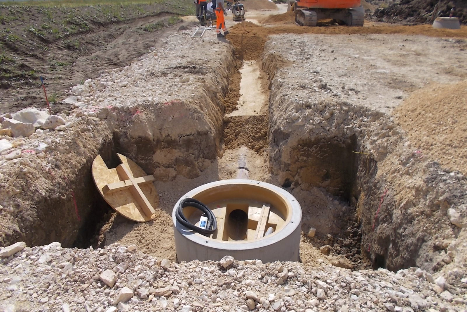 Ausdrückliches Lob gab es in Unterelchingen für eine im Lieferumfang inbegriffene Ergänzung, die zur Sicherheit auf der Baustelle beiträgt: „Die mitgelieferte Schutzplatte aus Holz ist ziemlich praktisch als Absturzsicherung“, so Bauleiter Lars Jasmer, LEONHARD WEISS GmbH & Co. KG. Straßenbau Günzburg, „das ist eine gute Alternative zu den Stahlabdeckungen, welche in der Regel für Betonschächte verwendet werden.“